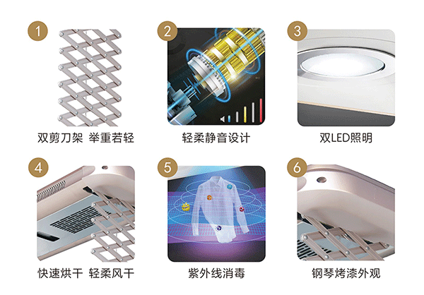 Compared with traditional drying racks, GELAN Electric Wisdom series drying racks are simple and easy to operate, saving time and effort. Lighting, disinfection, drying, automatic lifting and other functions can be realized with a single press of the remote control; The uniquely shaped Granville Smart Drying Rack can also be used as a home decoration on the balcony to enhance the high-quality lifestyle.