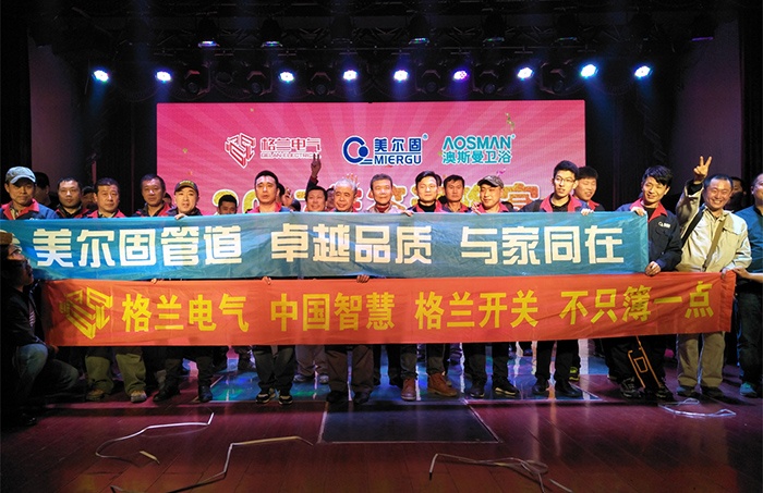 2017年3月29日,格蘭電氣鞍山總代理為感恩回饋廣大新老客戶,在鞍山通尊利源喜宴廣場盛大舉辦了一場客戶答謝會。此次答謝會,各方裝修公司、分銷商等共計四百余人歡聚一堂,共同展望2017年。這也是格蘭電氣進入鞍山市場以來,首次以全新的形象亮相。