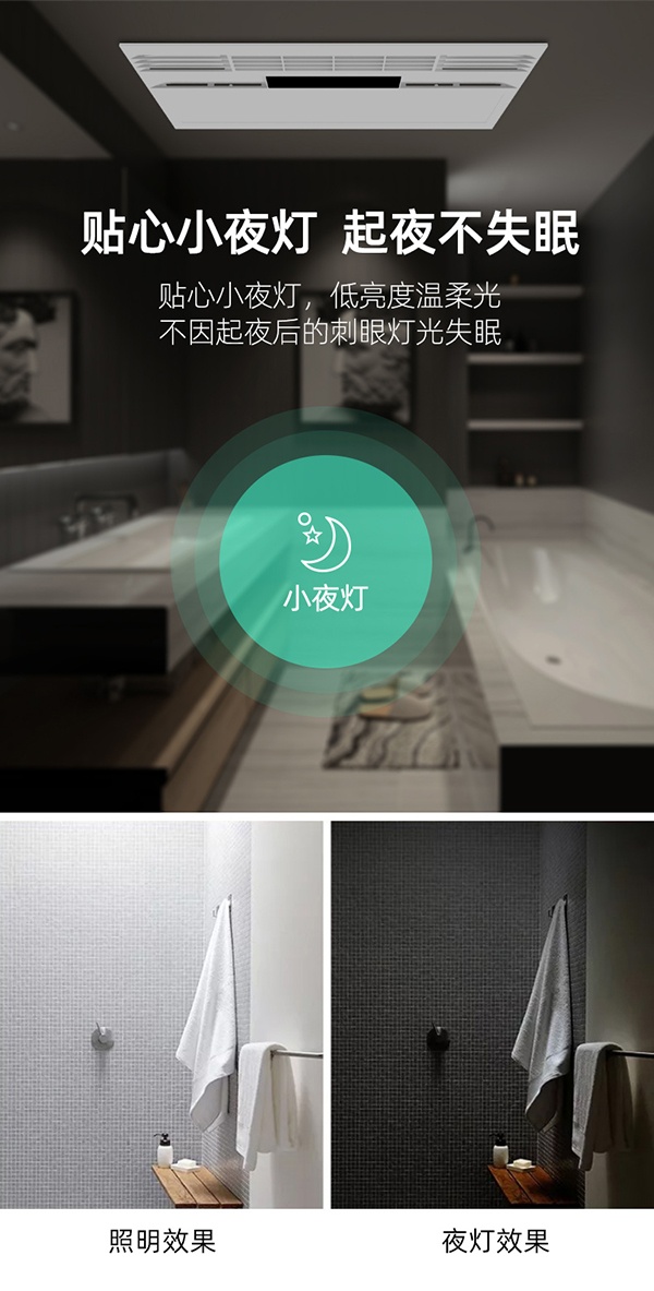 小夜燈給黑暗的浴室提供柔和的光線,半夜如廁不刺眼,給您貼心的照明。